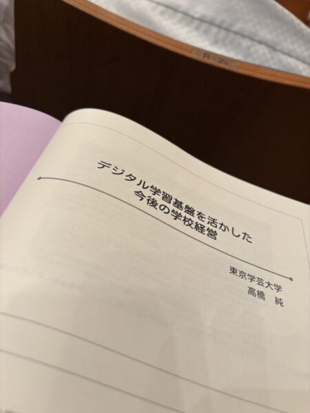 1日目は全体会として文科省からの行政説明のほか、「デジタル学習基盤を生かした今後の学校経営」と題した講演を聴きました。