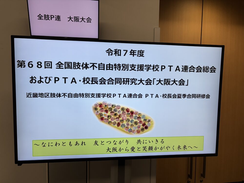 夏季休業中の8月20日(水)・21日(木)に大阪府大阪市北区にあるグランキューブ大阪(大阪府立国際会議場)において、全国肢体不自由特別支援学校PTA連合会総会 PTA・校長合同研究会「大阪大会」が開催され、校長が参加しました。