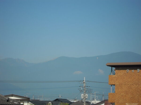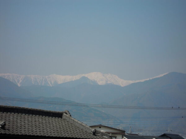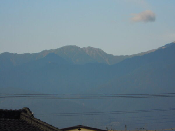 校長室の窓からから西側を見ると南アルプスの農鳥岳あたりもよく見えます。
