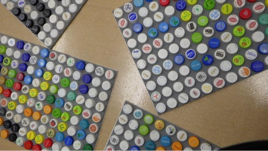 「ペットボトルキャップアート作品」は、全校児童生徒が協力して着々と進めています。完成作品を見るのが楽しみです。
