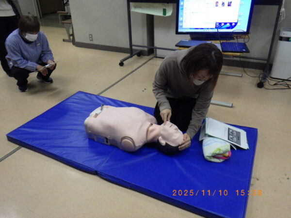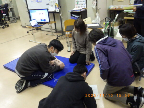 山梨県立甲府支援学校 > 甲養ブログ > 【中学部緊急時シミュレーション】 2025年11月14日カテゴリー: 甲養ブログ 保健 【中学部緊急時シミュレーション】 11月10日(月)、中学部では「緊急時対応シミュレーション」を行いました。 今回のシミュレーションは、過去に実際に起きた事例を振り返りながら、今後よりスムーズな対応ができるよう計画しました。シミュレーション前には、緊急時に最も重要となる「気道閉塞」と「気道確保」について、全員で再確認しました。 命を守るための基本をしっかり理解し、対応の優先順位を共有することが大切です。緊急時に落ち着いて行動するためには、平常時の訓練が欠かせません。 「こんなことが起きたらどうしよう」「こうなったらどこに連絡しよう」など、日頃からイメージし危機感を持ち続けることで、いざという時に冷静な対応ができます。今回のシミュレーションを通して、対応手順や連絡体制を再確認しました。 これからも子どもたちの安全を守るための取り組みを続けていきたいと思います。