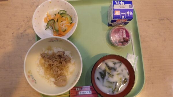 山梨県立甲府支援学校 > 甲養ブログ > 地産地消週間 2025年12月1日カテゴリー: 甲養ブログ 給食 地産地消週間 11月10日(月)~14日(金)は地産地消週間で、山梨県産の食材が毎日給食メニューに登場しました。 栄養士さんがメニューの説明をしてくださり、「今日のメニューの中で、山梨県で採れた食材は何でしょう?」とクイズを出してくれました。 主なメニュー以外にも、ごはん、サラダの中のきゅうり、味噌汁の味噌、醤油なども山梨県産が入っていることを知り、食堂では驚きの声が聞こえました。 児童生徒も、毎日食べている食材に興味・関心をもち、食育へとつながるよい機会となりました。 1週間のメニューの中で、山梨県産の食材をご紹介します。 【10日(月)】 ワインビーフコロッケ・・県産の甲州ワインビーフを使用 【11日(火)】 もみじかまぼこのすまし汁・・県産のシイタケ使用 【12日(水)】 味噌ごま豚汁・・県産ふじざくらポーク使用。味噌、醤油も山梨県産 梅ジャムゼリー・・甲州小梅を使用したゼリー 【13日(木)】 鶏肉の照り焼き・・タレは県産の醤油使用 なめこの味噌汁・ ・県産のネギ使用 【14日(金)】 豚丼・・県産ふじざくらポーク使用 サツマイモのみるくスープ・・県産のサツマイモ使用 ぶどうゼリー・・県産ぶどう使用