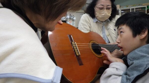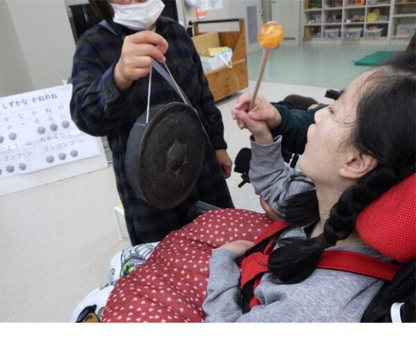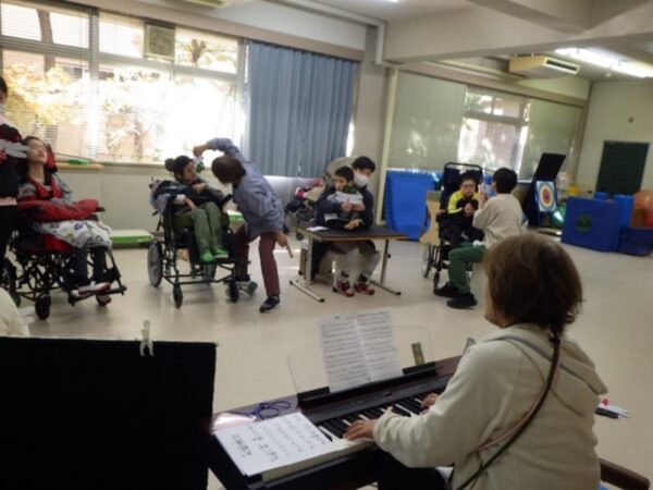 中学部では県の「いきいき教育地域人材活用事業」を活用し、11月21日に外部から音楽療法の先生をお呼びして、音楽活動をしました。