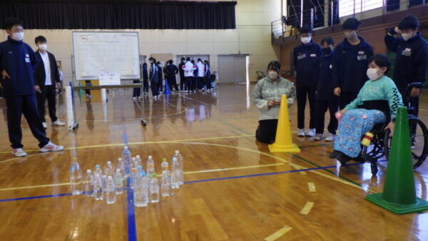 山梨県立甲府支援学校 > 交流及び共同学習 > 第二回敷島中学校との交流 2025年12月15日カテゴリー: 交流及び共同学習 甲養ブログ 中学部 第二回敷島中学校との交流 令和7年12月4日(木)に敷島中学校の1年2組と本校の中学部で二回目の学校間交流をしました。活動は敷島中学校の生徒が考えてきてくれた「ボウリング」と「成果発表」を行いました。今回は冬場でしたが気温も温かったため体育館で全体で行いました。ボウリングでは、投げる前にサイコロを振って出た目のボールを投球しました。面白さ抜群でペアになって深い交流ができました。「成果発表」では、甲養祭ダンスと敷島中学校は合唱を発表し合いました。お互いに一回目よりもコミュニケーションしている場面や協力する場面が多くみられ、また一回目よりさらに楽しく良い交流を行うことができました。