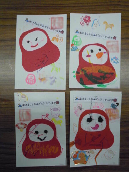 小学部児童が描いた「年賀状」です。かわいいだるまさんが願いを叶えてくれそうです。