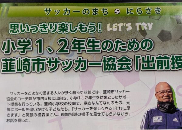 3年前から韮崎市サッカー協会の事業として、市内に5つの小学校に出向いて「出前授業」を行っています。