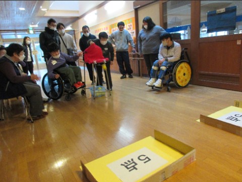 山梨県立甲府支援学校 > 甲養ブログ > 寄宿舎 新年お楽しみ会 2026年2月4日カテゴリー: 甲養ブログ 寄宿舎 寄宿舎 新年お楽しみ会 1月19日(月)に、池田地区シニアクラブの方々をお招きして、寄宿舎新年お楽しみ会を行いました。 互いに自己紹介をした後にお話タイムを設け、好きな食べ物や好きなことなどを発表し合いました。 会話も弾み、場が和んだところでシニアクラブの方とペアになり「ピンボールゲーム」を行いました。二人で息を合わせて、協力しながらボールを投げました。高得点が出ると歓声も上がり、皆の笑い声が響き渡る楽しい会となりました。 また、シニアクラブの方々と交流を重ねる中で、舎生達との親睦が深まり、ニックネームで呼び合う場面もありました。