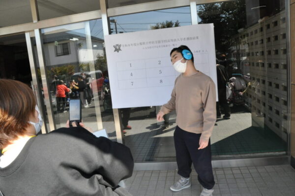 玄関前で合格者の受検番号を掲示すると、集まった受検生のみなさんや御家族から喜びの歓声があがりました。