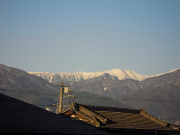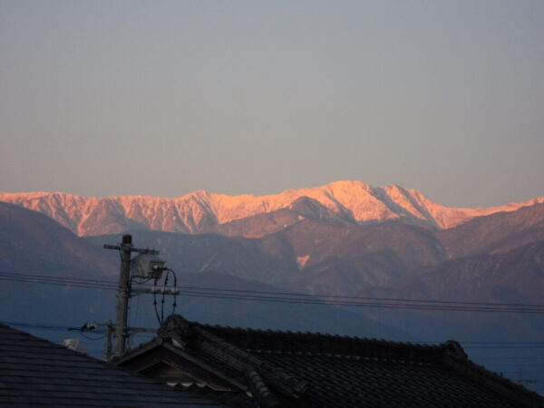 山梨県立甲府支援学校 > 甲養ブログ > 【校長室通信189】校長室からの南アルプス(後期) 2026年3月27日カテゴリー: 甲養ブログ 校長室通信 【校長室通信189】校長室からの南アルプス(後期) こちらも10月にも本ブログでお伝えした校長室の窓から見える南アルプスの本年度後期(R7年10月~R8年3月)の様子です。 10月 まだ青々とした山々。 11月 いよいよ白くなってきました。 12月 前方の山々とのコントラストがはっきりとしてきました。 1月 すっかり白くなりました。 2月 朝焼けに染まる山々です。 3月 まだまだ雪景色です。