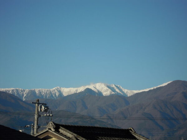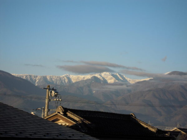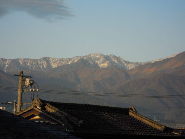 こちらも10月にも本ブログでお伝えした校長室の窓から見える南アルプスの本年度後期(R7年10月~R8年3月)の様子です。