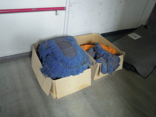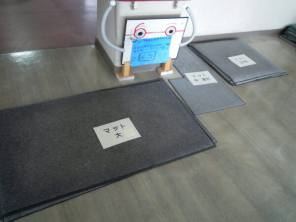 環境関係では、児童生徒玄関にたくさんのモップ布や各種マットが集められていました。