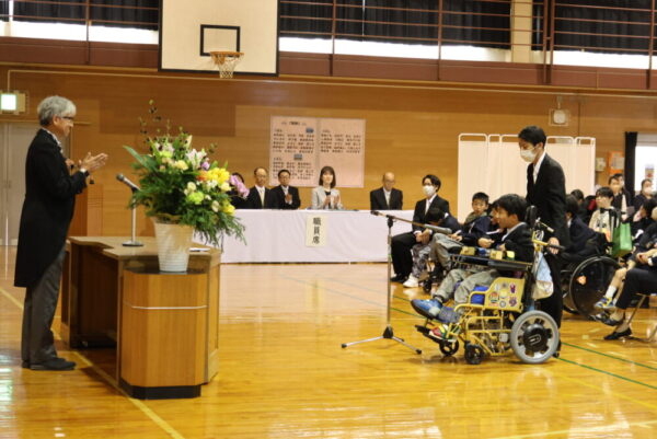 全てが初体験となる小学1年生のみなさんは、緊張した様子も見られましたが、それを見守る中学部や高等部のお兄さん、お姉さんの目はとても優しかったです。新入生代表の挨拶も、学校生活への期待と希望があふれていました。