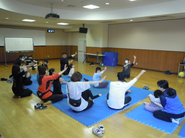 友達の様子も見ながら、みんなで楽しんで体操ができていました。